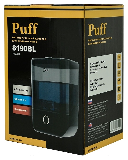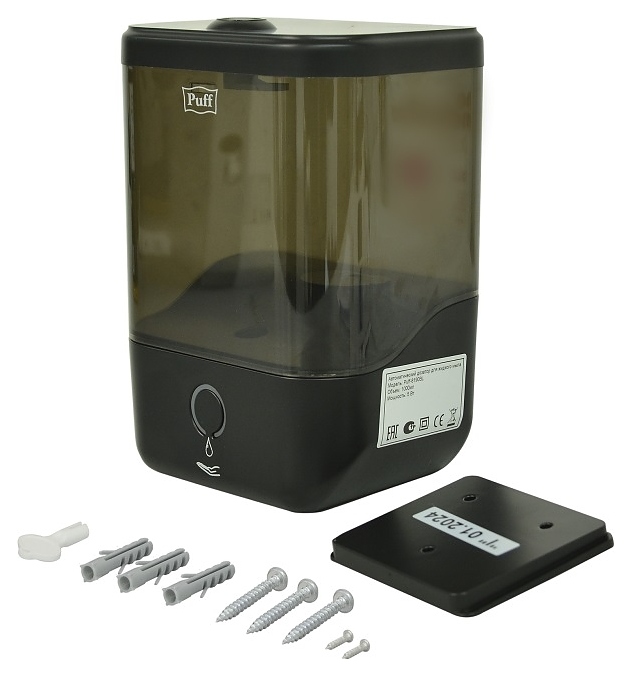 Автоматический дозатор Puff 8190Bl используется для размещения и порционной подачи жидкого мыла в общественных санитарных узлах гостиниц, вокзалов, предприятий общественного питания, медицинских учреждений и других мест массового пребывания. Модель оснащена резервуаром для расходного материала с дозирующей помпой, инфракрасным сенсорным датчиком приближения и запираемой на ключ крышкой. Вертикально ориентированный корпус и крышка выполнены из ударопрочного АБС-пластика с черной матовой поверхностью, упаковка – картонная коробка. Батареи не входят в комплект поставки и приобретаются отдельно. Комплектация: