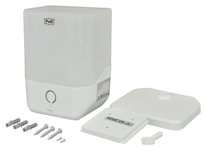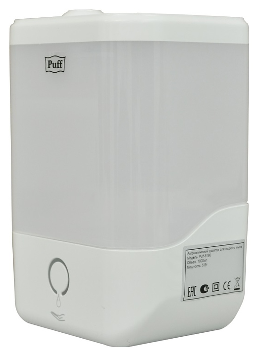 Автоматический дозатор Puff 8190 используется для размещения и порционной подачи жидкого мыла в общественных санитарных узлах гостиниц, вокзалов, предприятий общественного питания, медицинских учреждений и других мест массового пребывания. Модель оснащена резервуаром для расходного материала с дозирующей помпой, инфракрасным сенсорным датчиком приближения и запираемой на ключ крышкой. Вертикально ориентированный корпус и крышка выполнены из ударопрочного АБС-пластика с белой матовой поверхностью, упаковка – картонная коробка. Батареи не входят в комплект поставки и приобретаются отдельно. Комплектация:
