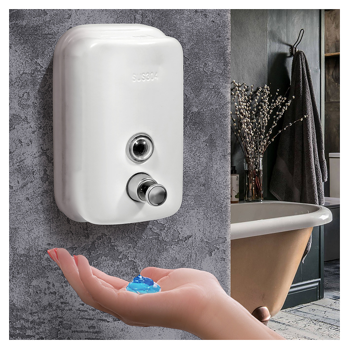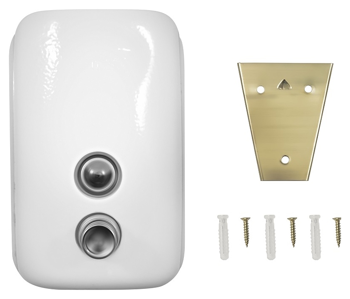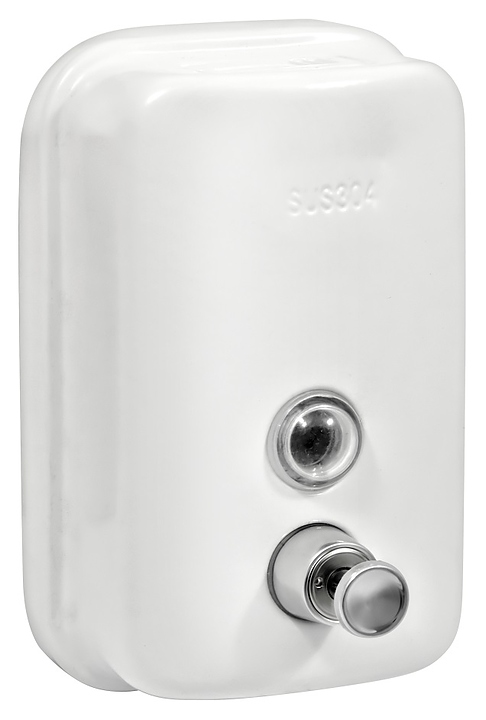 Дозатор Puff 8605W используется для размещения и порционной подачи жидкого мыла в общественных санитарных узлах гостиниц, вокзалов, предприятий общественного питания, медицинских учреждений и других мест массового пребывания. Модель оснащена резервуаром для расходного материала с дозирующей помпой и механической клавишей. Вертикально ориентированный корпус выполнен из нержавеющей стали марки SUS304 с матовым покрытием порошковой краской белого цвета, упаковка – картонная коробка. Комплектация: