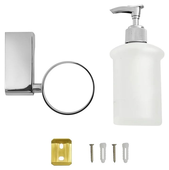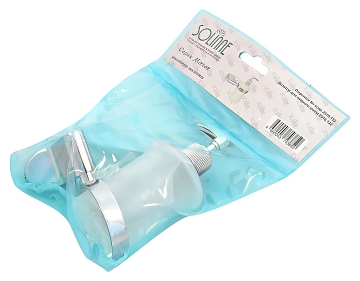 Дозатор Puff Solinne B-82706 Mirror используется для размещения и дозированной подачи жидкого мыла в бытовых санитарных узлах. Аксессуары коллекции Mirror имеют плоские глянцевые элементы и гармоничного сочетаются с зеркальными поверхностями в интерьере. Модель состоит из емкости круглого сечения с механической дозирующей помпой и кольцеобразного держателя с уплощенным креплением. Держатель выполнен из силумина – сплава алюминия с кремнием с глянцевой поверхностью оттенка хром, емкость – из полупрозрачного матового стекла, упаковка – мягкий полимерный блистер. Комплектация: