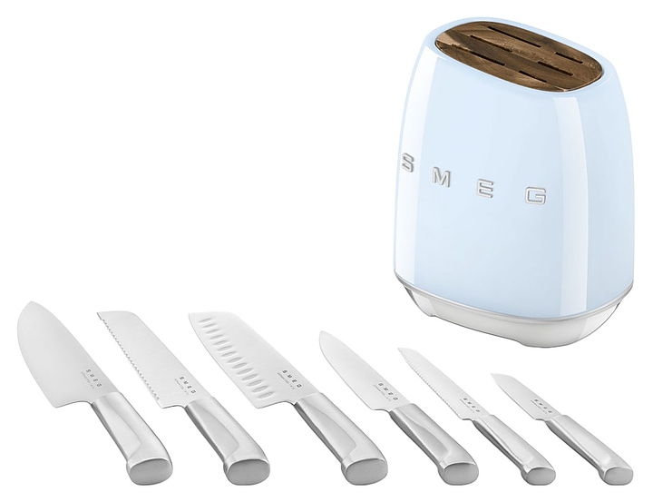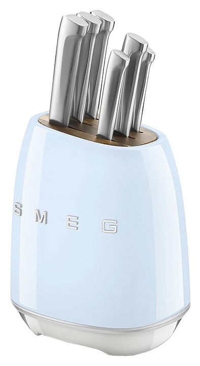 Набор ножей SMEG KBSF02PB (6 шт. с подставкой) пастельный голубой