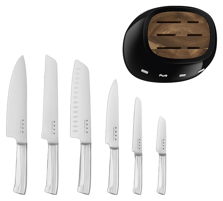 Набор ножей SMEG KBSF02BL (6 шт. с подставкой) черный
