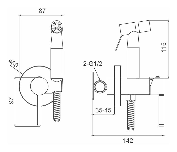 Гигиенический душ Splenka S221.52.03 предназначен для подачи горячей и холодной воды в туалетных комнатах. Керамический картридж обеспечивает плавный ход рычага смесителя, контроль и точность при выборе напора и температуры воды. Корпус выполнен из нержавеющей стали, отличающейся прочностью, долговечностью и устойчивостью к коррозии, лейка - из ABS пластика, шланг - из ПВХ. В комплект поставки входят внутренняя часть, 1-режимная лейка и шланг. Особенности: