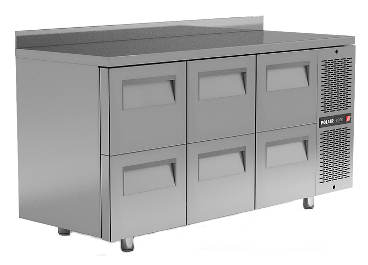 Холодильный стол POLAIR TM3GN-222-GC предназначен для хранения продуктов и обработки ингредиентов на рабочей поверхности на предприятиях общественного питания и торговли. Модель оснащена 6 ящиками. Цельнозаливные корпус и двери изготовлены из стали и обеспечивают механическую прочность, термоизоляцию, герметичность и долговечность стола. Оборудование рассчитано на работу при температуре окружающей среды до 43 °С и относительной влажности воздуха до 80%. Уникальная программа по расчету столов с выдвижными ящиками (более 5000 различных сочетаний). Особенности: