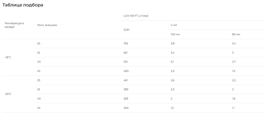 Сплит-системы на объем холодильных камер подобраны при обязательном соблюдении следующих условий эксплуатации: