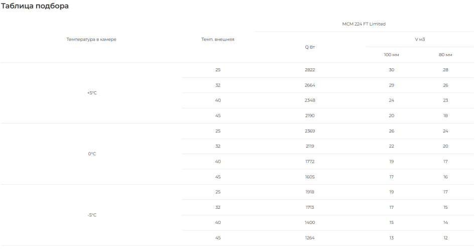 Сплит-системы на объем холодильных камер подобраны при обязательном соблюдении следующих условий эксплуатации: