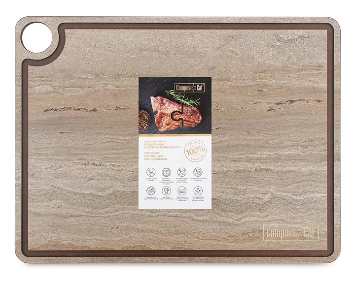 Доска разделочная c желобом ComposeEat ProFashion DRJ32240406KL6 32х24 см, травертин капучино