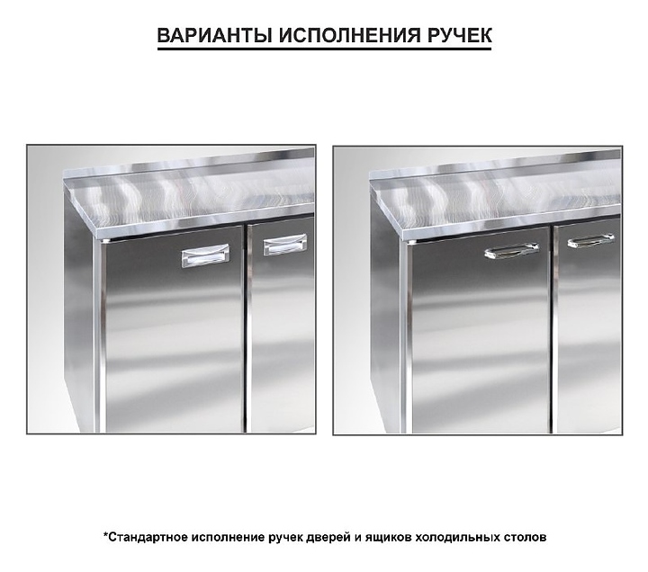 Среднетемпературный холодильный стол для салатов (саладетта) Finist СХСнс-700-2 1/1 предназначен для обеспечения сохранности и свежести составляющих для холодных закусок и салатов на предприятиях общественного питания и торговли. Модель оснащена микропроцессорным блоком управления, 2 дверями, 2 гастроемкостями GN1/1 и 3 гастроемкастями GN1/6 с крышками. Корпус и столешница выполнены из нержавеющей стали. Вместо любой секции с дверью возможно установить секцию с двумя или тремя ящиками. Производитель оставляет за собой право менять исполнение ручек на холодильных столах. Внимание! На фото аналогичные модели в другой комплектации. Особенности: