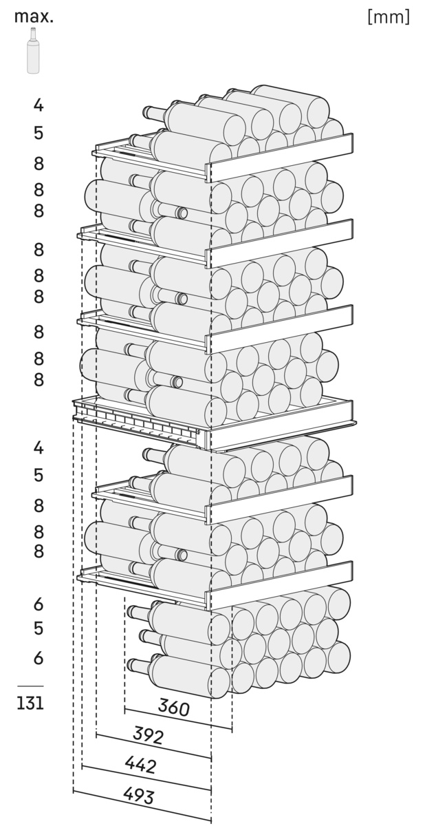 Регулируемые по высоте фронтальные бортики для предотвращения выпадения бутылок