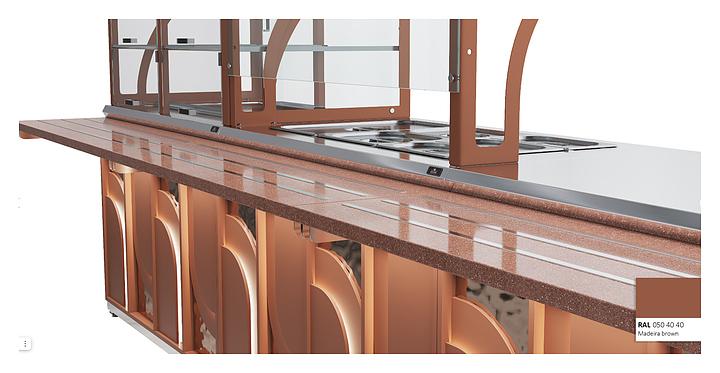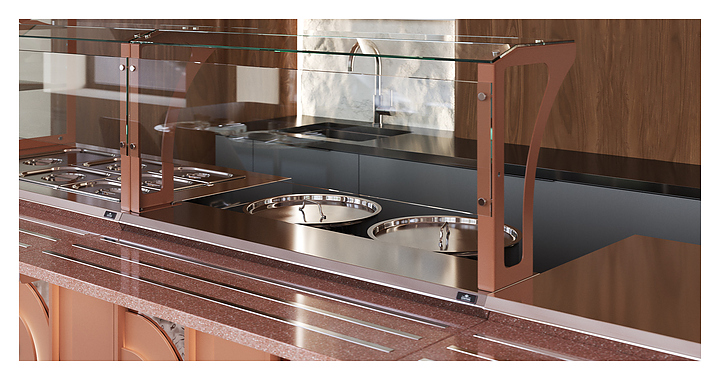 Мармит первых блюд 2-конфорочный Luxstahl МПЧ (С)-1200 Premium Arch (Арка) с направляющей из нержавеющей стали используется в составе линии раздачи Arch на предприятиях общественного питания и торговли для кратковременного хранения в горячем состоянии первых блюд в наплитных котлах и раздачи их потребителю. Модель оснащена 2 чугунными конфорками и верхней полкой из стекла 6 мм. Каркас выполнен из нержавеющей стали AISI 430 толщиной 1 мм, фасад - из окрашенного МДФ, направляющая для подносов - из профильной трубы 25х25 мм. Особенности: