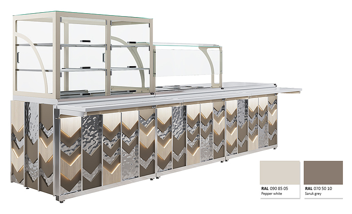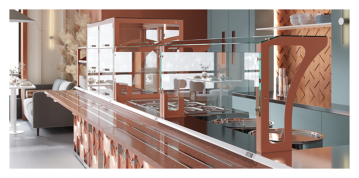 Электрический мармит паровой Luxstahl МВП (С)-1200 Premium Vector (Вектор) с направляющей из нержавеющей стали используется в составе линии раздачи Vector на предприятиях общественного питания и торговли для кратковременного хранения в горячем состоянии вторых блюд в гастроемкостях и раздачи их потребителям. Модель оснащена терморегулятором (два ПЭН-а) и верхней полкой из стекла 6 мм. Каркас выполнен из нержавеющей стали AISI 430 толщиной 1 мм, фасад - из окрашенного МДФ, направляющая для подносов - из профильной трубы 25х25 мм. Особенности:
