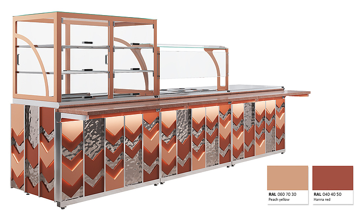 Мармит первых блюд под электрические супницы Luxstahl МПН (С) -900 Premium Vector (Вектор) с направляющей из нержавеющей стали используется в составе линии раздачи Vector на предприятиях общественного питания и торговли для кратковременного хранения в горячем состоянии первых блюд в электрический супницах и раздачи их потребителю. Модель оснащена 2 розетками под электрические мармиты и верхней полкой из стекла 6 мм. Каркас выполнен из нержавеющей стали AISI 430 толщиной 1 мм, фасад - из окрашенного МДФ, направляющая для подносов - из профильной трубы 25х25 мм. Особенности: