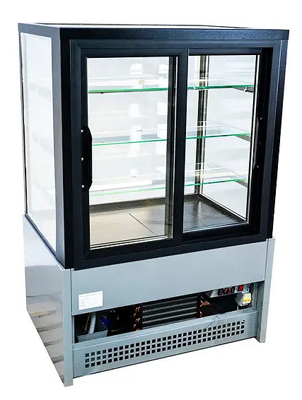 Кондитерская витрина CLSY LUXE Showcase 0,9 используется на предприятиях общественного питания и торговли для демонстрации, охлаждения и кратковременного хранения тортов, пирожных и других кондитерских изделий. Модель оснащена электрическим блоком управления, датчиком температуры, диодными лампами, дверями-купе, 3 полками и прямыми стеклопакетами, что позволяет лучше сохранять холод, экономить электроэнергию и увеличивать ресурс двигателя. Каркас выполнен из стали, полки из нержавеющей стали, термоизоляция корпуса и боковин - из пенополиуретана, раздвижные задние двери так же оснащены стеклопакетами. Оборудование работает при температуре окружающей среды 25 °С и влажности 60%. Особенности: