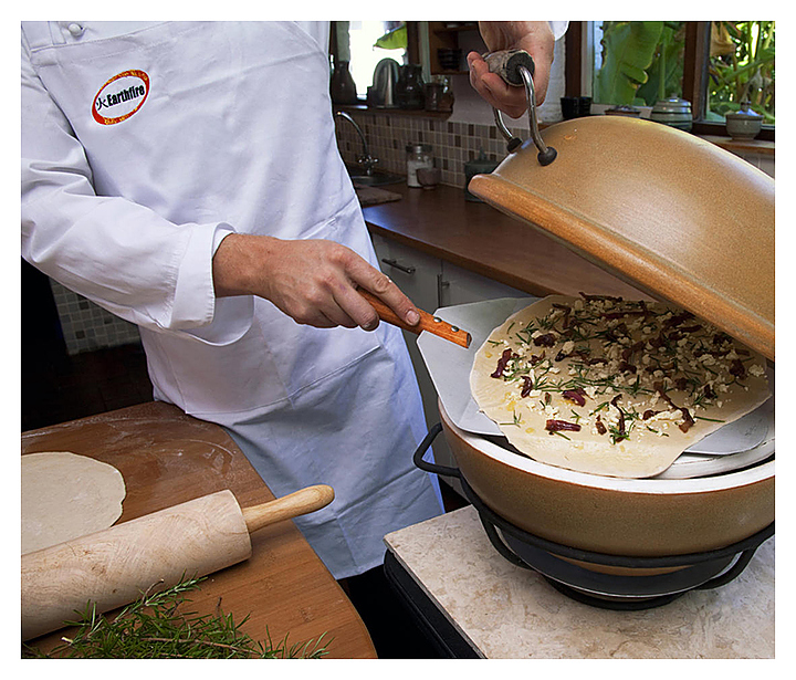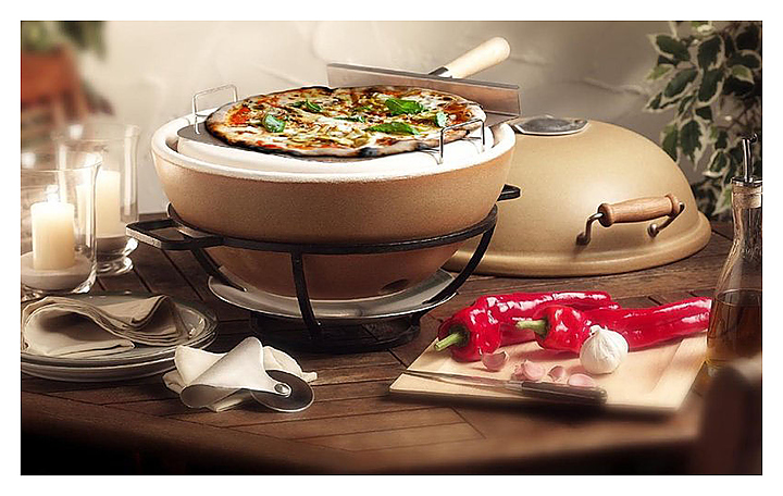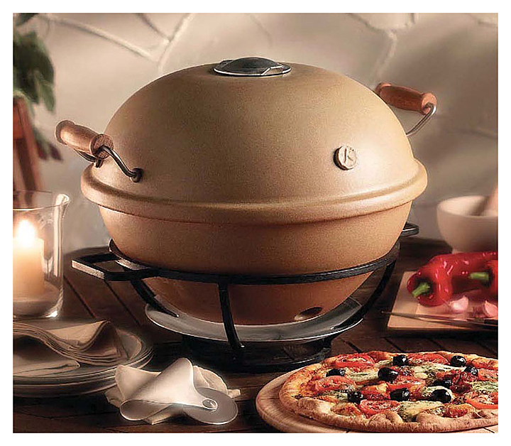 Керамическая пицца-печь Earthfire Pizza Oven была разработана для того, чтобы сделать настоящую пиццу на древесных углях с вкусной хрустящей основой в вашем собственном доме, на веранде или на природе! Но это не значит, что она не универсальная, она раскроет для вас многие другие возможности. Керамическая Пицца-печь Earthfire Pizza Oven легко превращается в гриль для приготовления мяса, запеченных овощей, нежной рыбы и морских деликатесов на углях, цыпленка с хрустящей корочкой, томлёных блюд в горшочках и многого, многого другого. Керамическая Пицца-печь Earthfire Pizza Oven — неоценимый и оригинальный подарок для любителей отдыха на свежем воздухе. Используя решетку из нержавеющей стали, расположив её на пицца-камне или непосредственно над углями, вы можете жарить и запекать, готовить рыбные и мясные блюда, овощи и птицу. Используя керамическую или другую жаростойкую посуду, вы значительно разнообразите рецептуру ваших блюд, приготовленных на Earthfire Pizza Oven. Универсальная Earthfire Pizza Oven изготовлена вручную из уникального керамического материала с применением технологии NillTherm, чтобы вы могли сделать лучшую домашнюю пиццу. Earthfire Pizza Oven готовит новую, диаметром более 30 см, пиццу каждые 3–4 минуты так, что вам будет легко угощать многочисленную компанию ваших друзей без долго ожидания следующего ломтика. Бесконечная вереница всё новой и новой пиццы превратит дружескую встречу в незабываемый праздник! Домашняя керамическая печь Earthfire Pizza Oven обладает всеми характеристиками обычной дровяной печи, но экономит не менее чем половину стоимости. Время прогрева составляет всего 30 минут, а не более двух часов, как в обычной печи. Earthfire Pizza Oven поддерживает температуру 350 °С в течение нескольких часов на одной растопке. Керамическая печь Earthfire Pizza Oven благодаря конструктивным особенностям и уникальной керамике удерживает влагу настолько хорошо, что продукты не подвергаются ужарке и весь сок продуктов остаётся внутри. Пицца, приготовленная в Earthfire Pizza Oven, насыщена уникальным запахом дровяной печи, сохраняет и обогащает вкус начинки, и всё это на вкуснейшей хрустящей основе. Комплектация и аксессуары