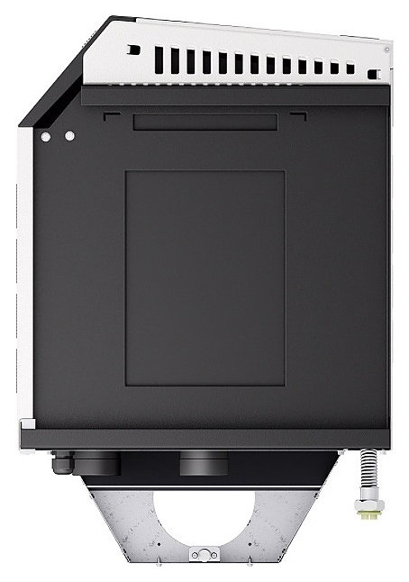 Распашная фронтальная дверь с магнитным фиксатором, легкосъемные боковая панель и верхняя крышка с клипсовым креплением, съемные крышки дымосборника для удобства технического обслуживания и очистки без необходимости отсоединения дымохода