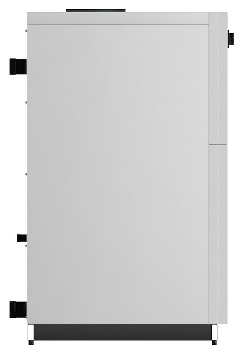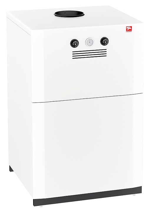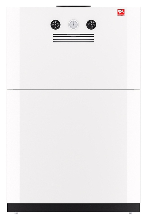 Газовый отопительный котел Лемакс Classic-70 предназначен для эксплуатации в системах отопления с принудительной или естественной циркуляцией теплоносителя в жилых и загородных частных домах, а также других бытовых и хозяйственных объектах. Модель оснащена газогорелочным устройством ГГУ-80 с инжекционными микрофакельными горелками Polidoro (Италия) и автоматикой безопасности SIT 820 Nova (Италия), сварным теплообменником с цилиндрическими дымогарными каналами и турбулизаторами, расположенной в верхней части фронта механической панелью управления с 2 поворотно-нажимными переключателями, вертикально установленным патрубком дымохода, расположенными на тыльной стенке резьбовым штуцером для подключения газа, патрубками подачи и обратки отопительного контура. Вертикально ориентированный корпус выполнен из стали с антикоррозийным покрытием белого цвета, теплообменник – из высококачественной стали с покрытием антикоррозийной термостойкой эмалью и обработкой ингибирующим соли составом, горелки – из жаропрочной нержавеющей стали.