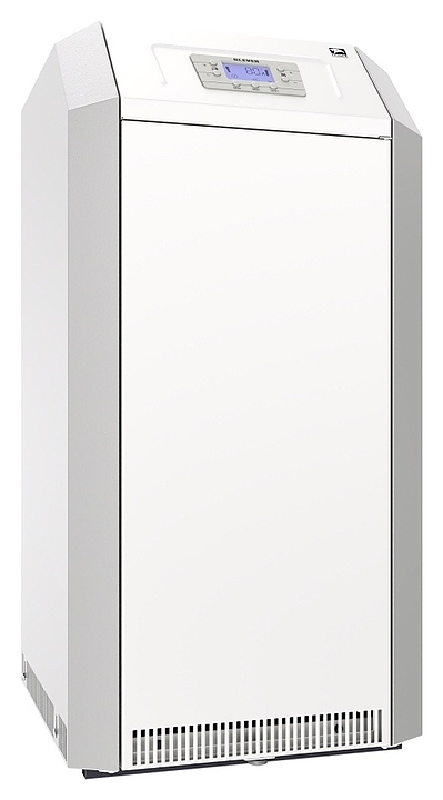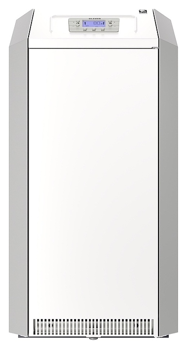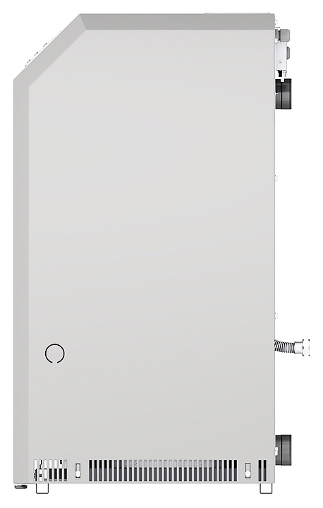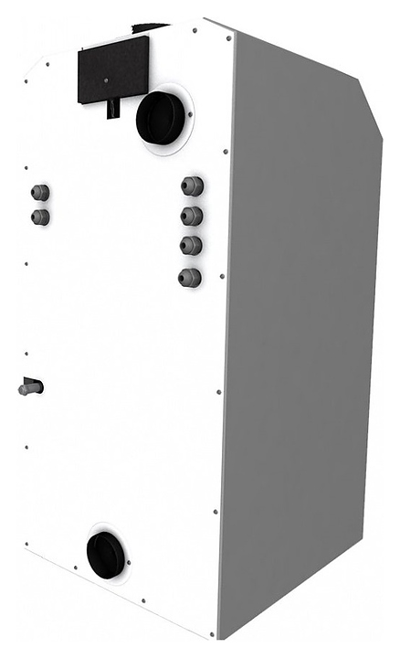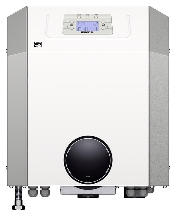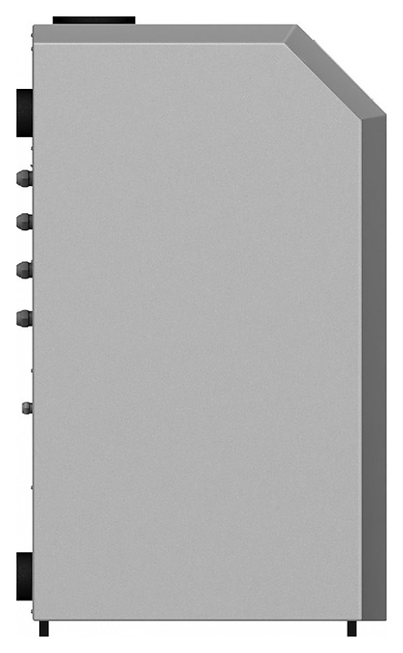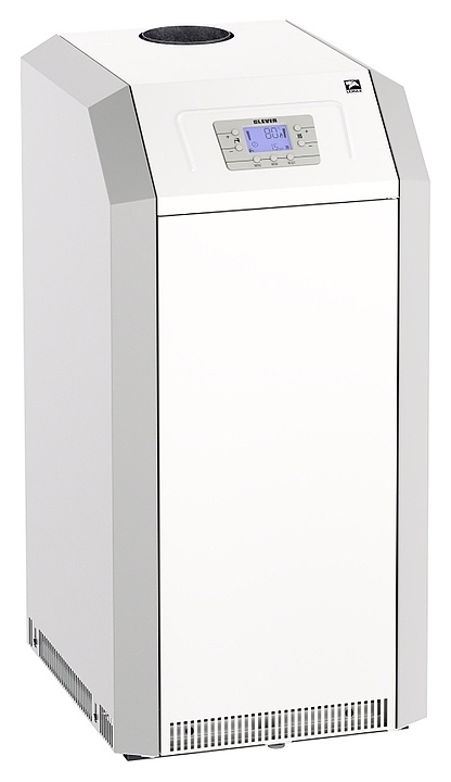 Газовый отопительный котел Лемакс Clever 55 предназначен для эксплуатации в системах отопления с принудительной или естественной циркуляцией теплоносителя в жилых и загородных частных домах, а также других бытовых и хозяйственных объектах. Модель оснащена газогорелочным устройством с инжекционными микрофакельными горелками Polidoro (Италия) и автоматикой безопасности SIT 845 Sigma (Италия), сварным теплообменником с цилиндрическими дымогарными каналами и турбулизаторами, расположенной на верхней фронтальной наклонной стенке электронной панелью управления с нажимными функциональными клавишами и жидкокристаллическим дисплеем индикации, вертикально установленным патрубком дымохода, расположенными на тыльной стенке отверстиями для кабелей дополнительных внешних устройств с резиновыми манжетами, резьбовым штуцером для подключения газа, патрубками подачи и обратки отопительного контура. Вертикально ориентированный корпус выполнен из стали с антикоррозийным покрытием в комбинации серого и белого тонов, теплообменник – из высококачественной стали с покрытием антикоррозийной термостойкой эмалью и обработкой ингибирующим соли составом, горелки – из жаропрочной нержавеющей стали.