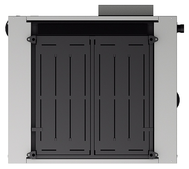 Легкосъемные фронтальная дверь и верхняя крышка с клипсовым креплением, съемные боковые панели и крышка дымосборника для удобства технического обслуживания и очистки
