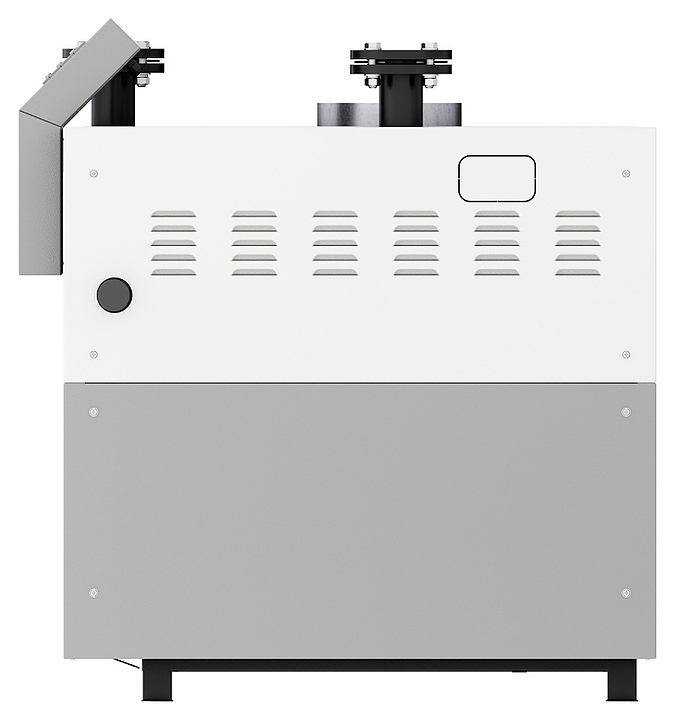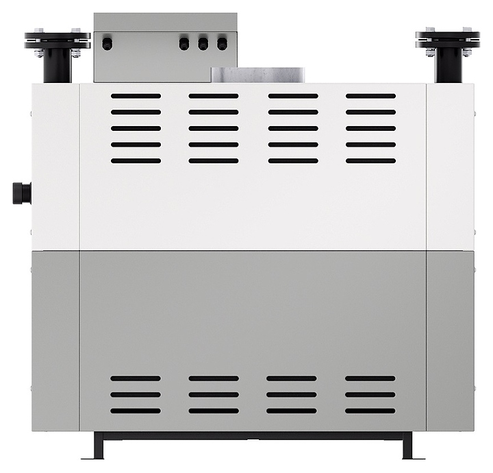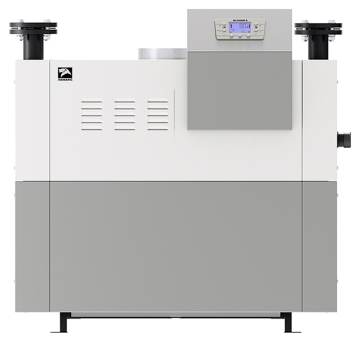 Газовый отопительный котел Лемакс Clever L 100 предназначен для эксплуатации в системах отопления с принудительной циркуляцией теплоносителя в жилых и загородных частных домах, а также других бытовых и хозяйственных объектах. Модель оснащена газогорелочным устройством с инжекционными микрофакельными горелками Polidoro (Италия), автоматикой безопасности SIT 845 Sigma (Италия), компонентами контроля розжига Brahma, горизонтальным водотрубным теплообменником, расположенным на верхней фронтальной наклонной секции электронной панелью управления с нажимными функциональными клавишами, жидкокристаллическим дисплеем индикации с подсветкой и расположенными на тыльной стенке отверстиями для кабелей дополнительных внешних устройств с резиновыми манжетами, резьбовым штуцером для подключения газа, сливным патрубком, вертикавертикально установленными сверху патрубком дымохода и патрубками подачи и обратки отопительного контура с фланцевым соединением. Горизонтально ориентированный корпус выполнен из стали с антикоррозийным покрытием в комбинации серого и белого тонов, трубы теплообменника – из стали марки 10 с внешним покрытием антикоррозийной термостойкой эмалью и внутренней обработкой ингибирующим соли составом, горелки – из жаропрочной нержавеющей стали.