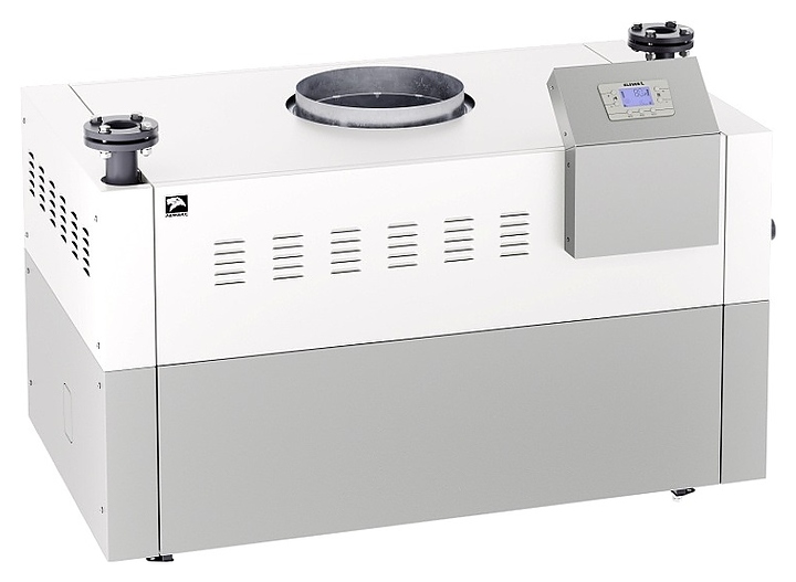 Газовый отопительный котел Лемакс Clever L 180 предназначен для эксплуатации в системах отопления с принудительной циркуляцией теплоносителя в жилых и загородных частных домах, а также других бытовых и хозяйственных объектах. Модель оснащена газогорелочным устройством с инжекционными микрофакельными горелками Polidoro (Италия), автоматикой безопасности SIT 845 Sigma (Италия), компонентами контроля розжига Brahma, горизонтальным водотрубным теплообменником, расположенным на верхней фронтальной наклонной секции электронной панелью управления с нажимными функциональными клавишами, жидкокристаллическим дисплеем индикации с подсветкой и расположенными на тыльной стенке отверстиями для кабелей дополнительных внешних устройств с резиновыми манжетами, резьбовым штуцером для подключения газа, сливным патрубком, вертикавертикально установленными сверху патрубком дымохода и патрубками подачи и обратки отопительного контура с фланцевым соединением. Горизонтально ориентированный корпус выполнен из стали с антикоррозийным покрытием в комбинации серого и белого тонов, трубы теплообменника – из стали марки 10 с внешним покрытием антикоррозийной термостойкой эмалью и внутренней обработкой ингибирующим соли составом, горелки – из жаропрочной нержавеющей стали.