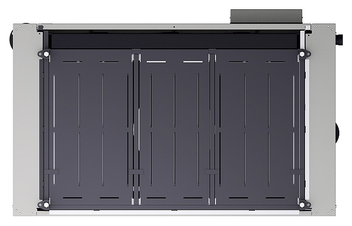 Легкосъемные фронтальная дверь и верхняя крышка с клипсовым креплением, съемные боковые панели и крышка дымосборника для удобства технического обслуживания и очистки