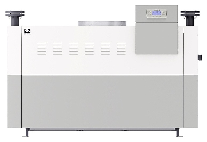 Газовый отопительный котел Лемакс Clever L 200 предназначен для эксплуатации в системах отопления с принудительной циркуляцией теплоносителя в жилых и загородных частных домах, а также других бытовых и хозяйственных объектах. Модель оснащена газогорелочным устройством с инжекционными микрофакельными горелками Polidoro (Италия), автоматикой безопасности SIT 845 Sigma (Италия), компонентами контроля розжига Brahma, горизонтальным водотрубным теплообменником, расположенным на верхней фронтальной наклонной секции электронной панелью управления с нажимными функциональными клавишами, жидкокристаллическим дисплеем индикации с подсветкой и расположенными на тыльной стенке отверстиями для кабелей дополнительных внешних устройств с резиновыми манжетами, резьбовым штуцером для подключения газа, сливным патрубком, вертикавертикально установленными сверху патрубком дымохода и патрубками подачи и обратки отопительного контура с фланцевым соединением. Горизонтально ориентированный корпус выполнен из стали с антикоррозийным покрытием в комбинации серого и белого тонов, трубы теплообменника – из стали марки 10 с внешним покрытием антикоррозийной термостойкой эмалью и внутренней обработкой ингибирующим соли составом, горелки – из жаропрочной нержавеющей стали.
