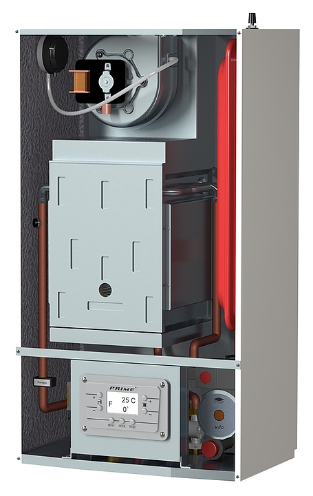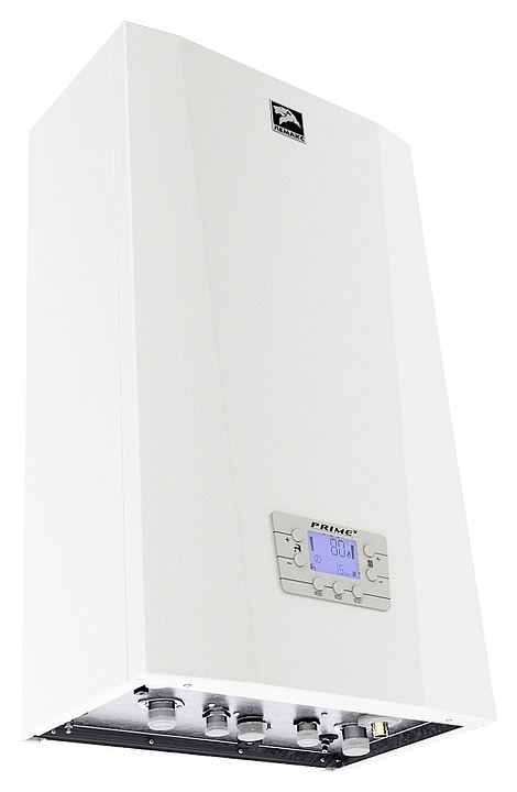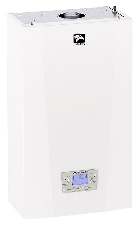 Газовый отопительный котел Лемакс Prime-V32 предназначен для эксплуатации в системах водоснабжения и отопления с принудительной циркуляцией теплоносителя в жилых и загородных частных домах, а также других бытовых и хозяйственных объектах. Модель оснащена газогорелочным устройством с инжекционными микрофакельными горелками Polidoro (Италия) и автоматикой безопасности SIT 845 Sigma (Италия), 2 раздельными теплообменниками, трехскоростным циркуляционным насосом, расширительным баком с ниппелем сверху, трехходовым клапаном с электроприводом, расположенной в нижней части фронта электронной панелью управления с нажимными функциональными клавишами и жидкокристаллическим дисплеем с подсветкой, дымовыводящим отверстием сверху, расположенными снизу резьбовым штуцером для подключения газа, входным и выходным патрубками контура горячего водоснабжения (ГВС), патрубками подачи и обратки отопительного контура, патрубком предохранительного клапана и дренажным патрубком. Вертикально ориентированный корпус выполнен из стали с антикоррозийным покрытием белого цвета, горелки – из жаропрочной нержавеющей стали, первичный теплообменник – из меди, вторичный теплообменник – из нержавеющей стали, расширительный бак – из стали с мембраной из бутадиен нитрильного каучука (NBR).