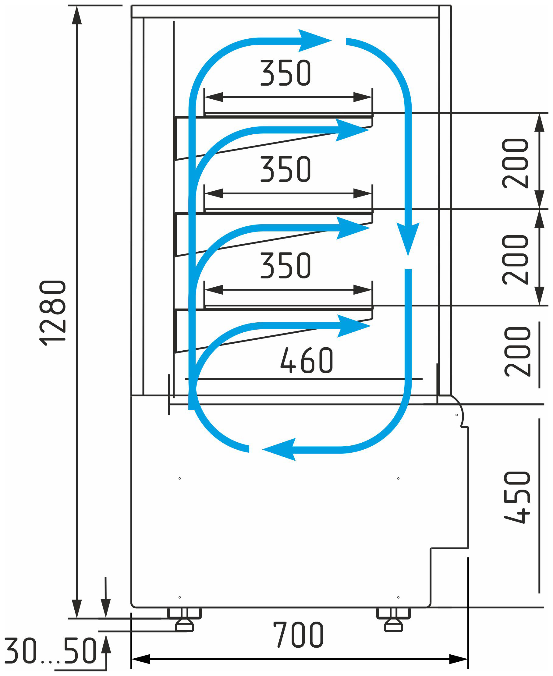 Открытая кондитерская витрина Carboma KC70 VM 0,9-2 Standard серии Cube Standard используется на предприятиях общественного питания и торговли для демонстрации, охлаждения и кратковременного хранения тортов, пирожных и других кондитерских изделий. Отсутствие переднего стеклопакета позволяет использовать витрину в зоне самообслуживания. Нержавеющая сталь во внешней и внутренней отделке витрины гарантирует долговечность, гигиеничность и безупречный внешний вид. Особенности: