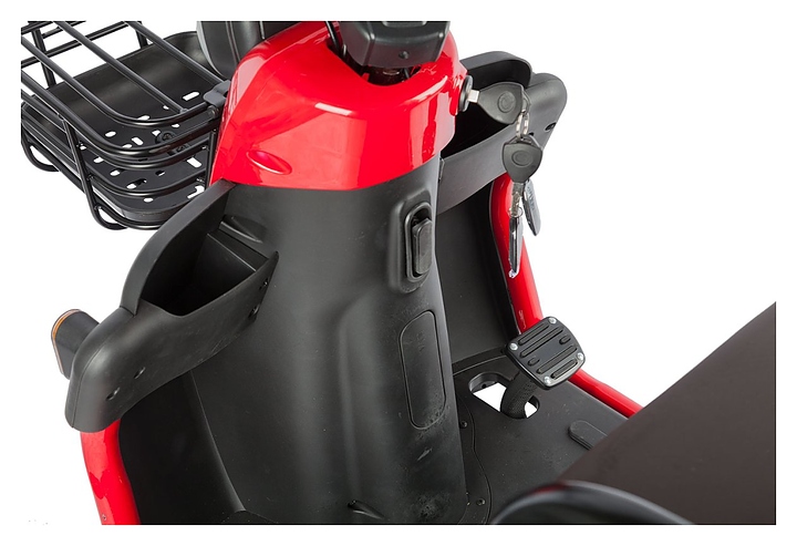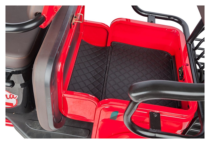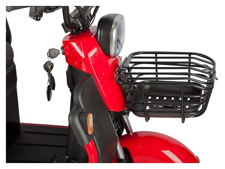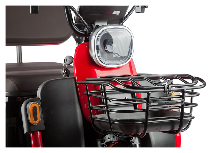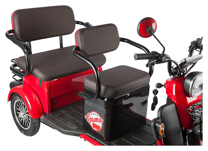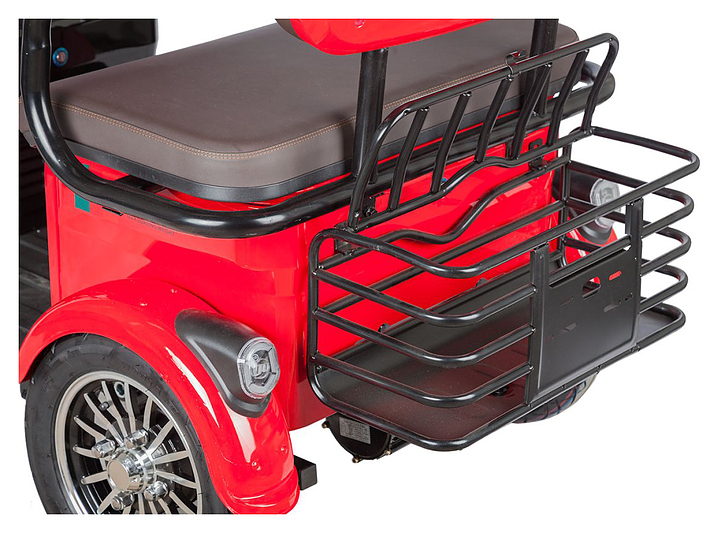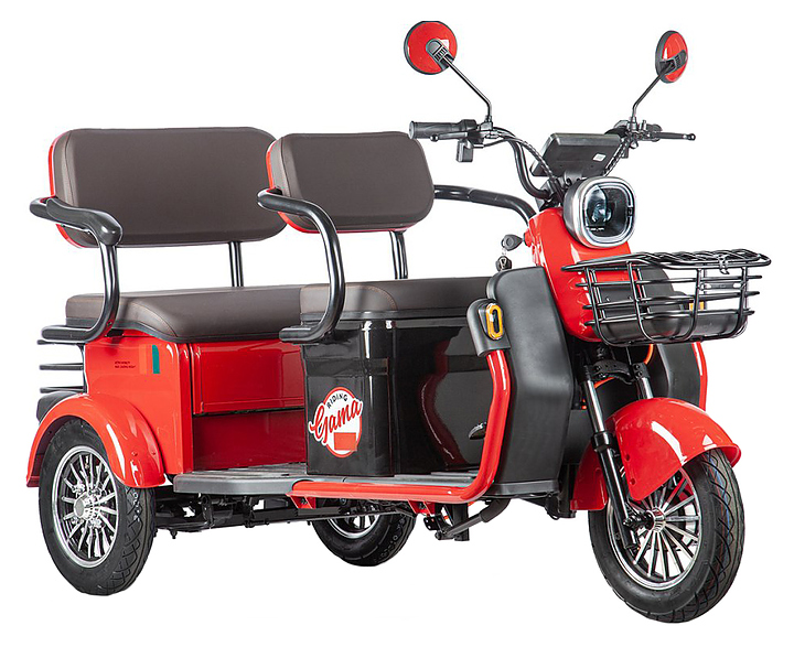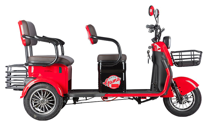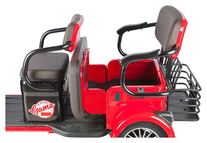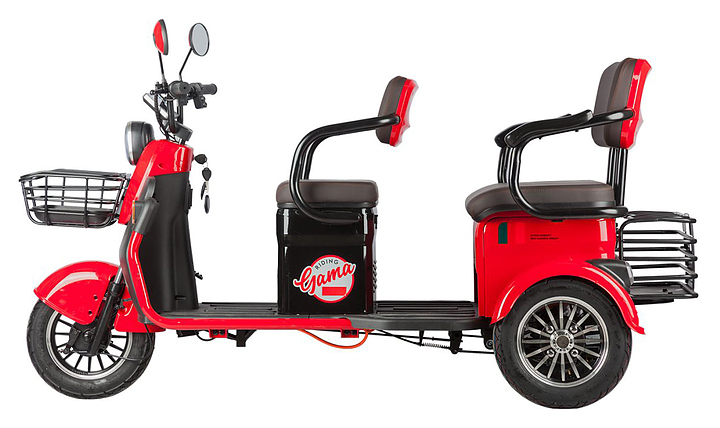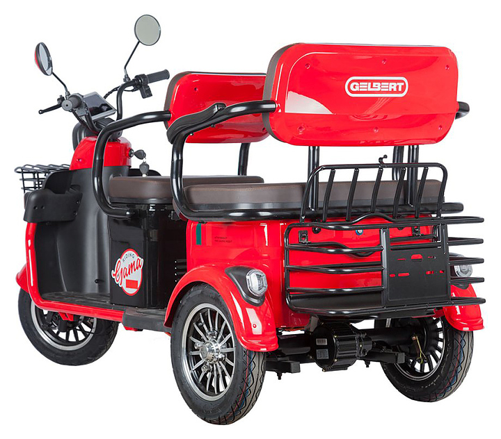 Трицикл Rutrike Gelbert Kappa предназначен для комфортного передвижения по городским улицам в сухую погоду, а также перевозки пассажиров и бытовых грузов. Модель оснащена барабанными передними и задними тормозами, задним приводом, корзинами на руле и сзади, мягкими спинками, подлокотниками и раскладывающимся задним сиденьем для перевозки грузов. Широкие колеса гарантируют комфортную езду. Аккумуляторные батареи и зарядное устройство в комплект поставки не входят. Дополнительные характеристики: