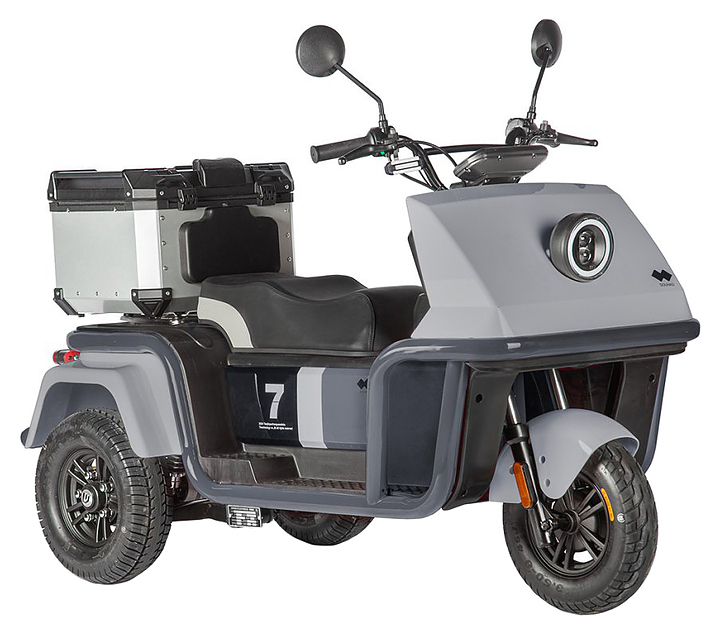 Трицикл WANSHIDA DOUHAO предназначен для комфортного передвижения по городу, в парках, на закрытых территориях, а также для коммерческого использования. Модель оснащена вместительным кейсом-багажником, эргономичными сиденьями мотоциклетного типа и прочной рамой. Барабанные передние и задние тормоза обеспечивают надежную остановку. Аккумуляторные батареи и зарядное устройство в комплект поставки не входят. Особенности: