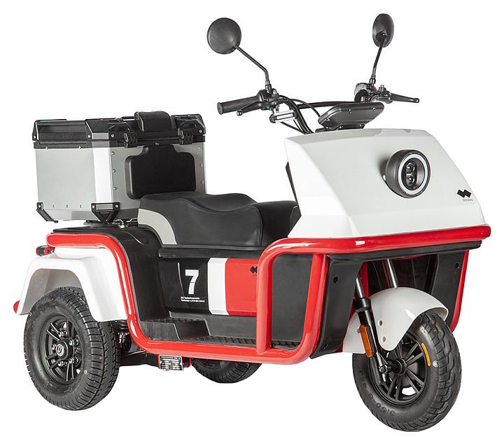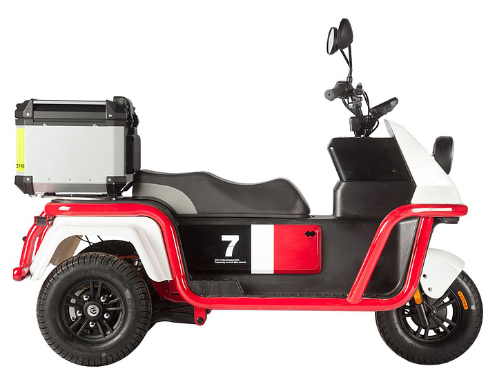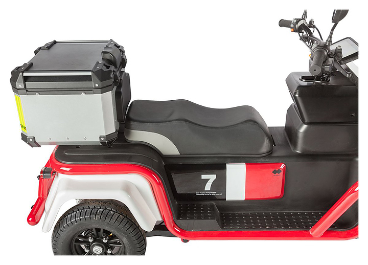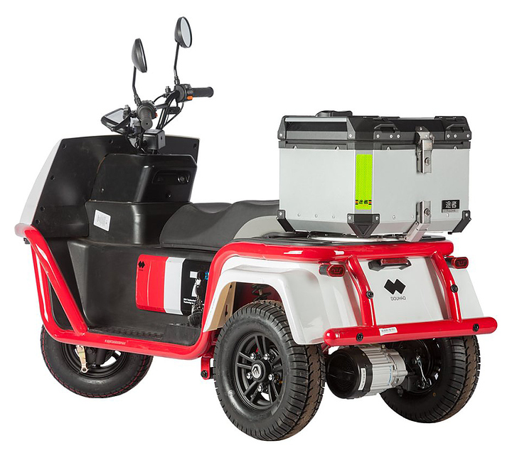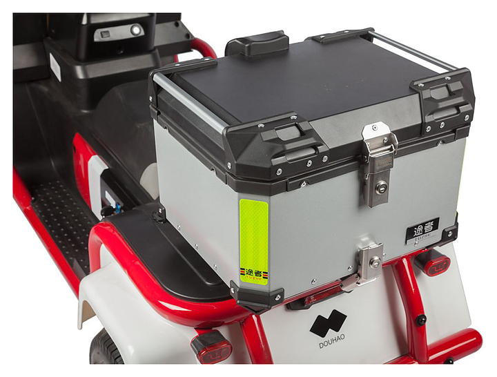 Трицикл WANSHIDA DOUHAO предназначен для комфортного передвижения по городу, в парках, на закрытых территориях, а также для коммерческого использования. Модель оснащена вместительным кейсом-багажником, эргономичными сиденьями мотоциклетного типа и прочной рамой. Барабанные передние и задние тормоза обеспечивают надежную остановку. Аккумуляторные батареи и зарядное устройство в комплект поставки не входят. Особенности: