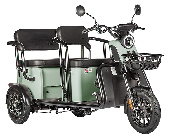 Трицикл WANSHIDA LC300 предназначен для комфортного передвижения по городу, в парках, на закрытых территориях и за городом. Модель оснащена сиденьями с мягкими спинками, подлокотниками, корзиной на руле и откидным задним сиденьем, под которым расположен вместительный багажник для хранения личных вещей и грузов. Зеркала заднего вида обеспечивают отличный обзор и повышают безопасность на дороге. Барабанные передние и задние тормоза гарантируют надежную остановку. Корзина выполнена из металла. Аккумуляторные батареи и зарядное устройство в комплект поставки не входят. Особенности: