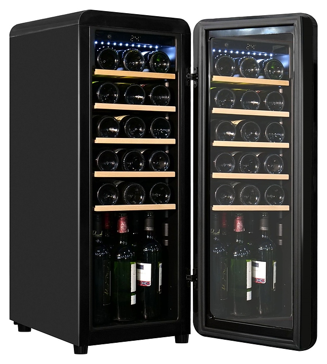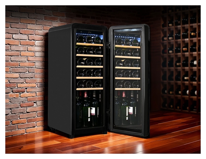 Винный шкаф Maunfeld TESLER CWC-248 BLACK предназначен для хранения при оптимальных условиях и предпродажной демонстрации бутилированного вина различных сортов в барах, ресторанах, специализированных магазинах, подсобных складских помещениях, а также домашних условиях. Модель оснащена монотемпературной холодильной камерой с правосторонней распашной дверью на скрытых петлях с обзорным остеклением, кабелем питания, расположенной внутри камеры электронной панелью управления с сенсорными функциональными клавишами и цифровым светодиодным дисплеем с белой подсветкой индикации. Корпус выполнен из стали с антикоррозийным покрытием черного цвета, остекление – из прозрачного закаленного стекла, рама двери черного цвета с окрукленными углами, внутренняя облицовка камеры черного цвета, полки – из массива натуральной древесины светлых пород. В комплект поставки входят 5 съемных полок с направляющими для размещения бутылок, инструкция по эксплуатации, гарантийный талон и заводская упаковка. Особенности: