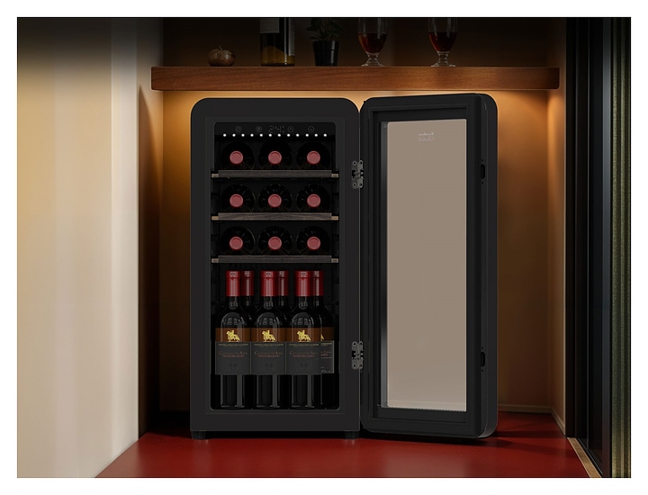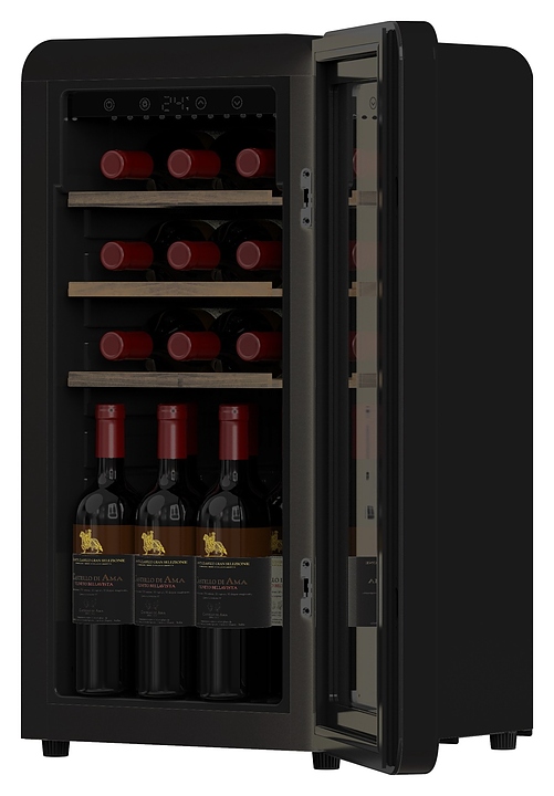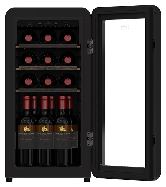 Винный шкаф Maunfeld TESLER CWC-188 BLACK предназначен для хранения при оптимальных условиях и предпродажной демонстрации бутилированного вина различных сортов в барах, ресторанах, специализированных магазинах, подсобных складских помещениях, а также домашних условиях. Модель оснащена монотемпературной холодильной камерой с правосторонней распашной дверью на скрытых петлях с обзорным остеклением, кабелем питания, расположенной внутри камеры электронной панелью управления с сенсорными функциональными клавишами и цифровым светодиодным дисплеем с белой подсветкой индикации. Корпус выполнен из стали с антикоррозийным покрытием черного цвета, остекление – из прозрачного закаленного стекла, рама двери черного цвета с окрукленными углами, внутренняя облицовка камеры черного цвета, полки – из массива натуральной древесины светлых пород. В комплект поставки входят 3 съемные полки с направляющими для размещения бутылок, инструкция по эксплуатации, гарантийный талон и заводская упаковка. Особенности: