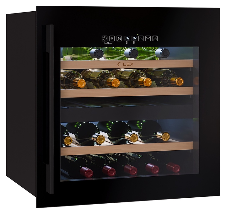 Винный шкаф Lex LWD6036BL dual zone S предназначен для хранения при оптимальных условиях бутилированного вина различных сортов в барах, ресторанах, специализированных магазинах, подсобных складских помещениях, а также домашних условиях. Модель оснащена холодильной камерой c 2 температурными зонами, интегрированными направляющими для полок, правосторонней распашной дверью на перенавешиваемых петлях с длинной уплощенной вертикальной рукояткой и обзорным остеклением, кабелем питания, расположенной на фасаде двери электронной панелью управления с сенсорными функциональными клавишами и 2 цифровыми светодиодными дисплеями с белой подсветкой индикации. Корпус выполнен из металла с антикоррозийным покрытием, дверь с полным фронтальным остеклением без винтового крепежа, рама двери и внутренняя облицовка камеры черного цвета, рукоятка – из металла с матовым покрытием черного цвета, остекление – из закаленного стекла с дымчатой тонировкой, полки – из массива буковой древесины с фронтальной гравировкой логатипа. В комплект поставки входят 3 съемные полки с направляющими для размещения бутылок, набор крепежа, инструкция по эксплуатации, гарантийный талон и заводская упаковка. Особенности: