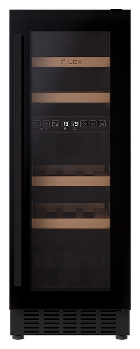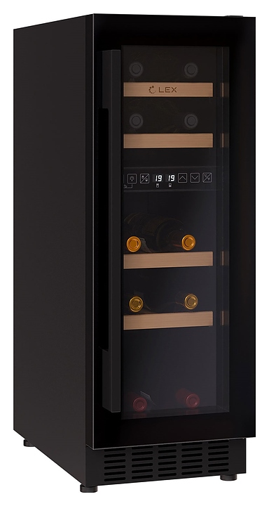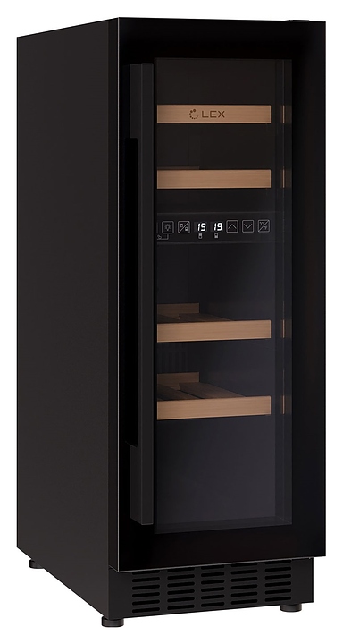Винный шкаф Lex LWD3017BL dual zone предназначен для хранения при оптимальных условиях бутилированного вина различных сортов в барах, ресторанах, специализированных магазинах, подсобных складских помещениях, а также домашних условиях. Модель оснащена холодильной камерой c 2 температурными зонами, интегрированными направляющими для полок, правосторонней распашной дверью на перенавешиваемых петлях с длинной уплощенной вертикальной рукояткой и обзорным остеклением, цокольной вентиляционной решеткой, кабелем питания, расположенной внутри камеры электронной панелью управления с сенсорными функциональными клавишами и 2 цифровыми светодиодными дисплеями с белой подсветкой индикации. Корпус выполнен из металла с антикоррозийным покрытием, дверь с полным фронтальным остеклением без винтового крепежа, рама двери и внутренняя облицовка камеры черного цвета, рукоятка – из металла с матовым покрытием черного цвета, остекление – из закаленного стекла с дымчатой тонировкой, полки – из массива буковой древесины с фронтальной гравировкой логатипа. В комплект поставки входят 4 съемные полки с направляющими для размещения бутылок, набор крепежа, инструкция по эксплуатации, гарантийный талон и заводская упаковка. Особенности: