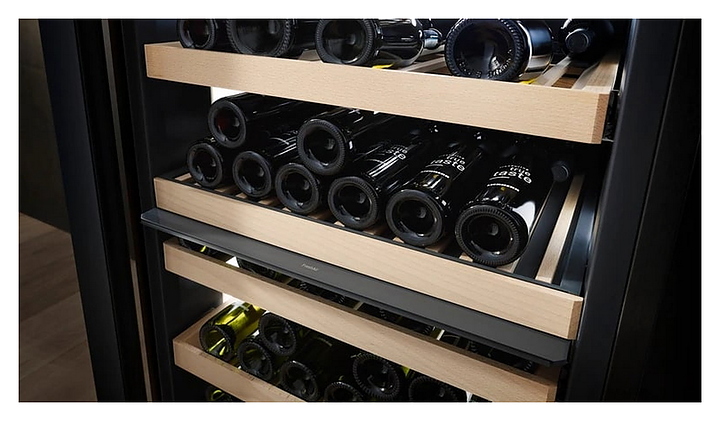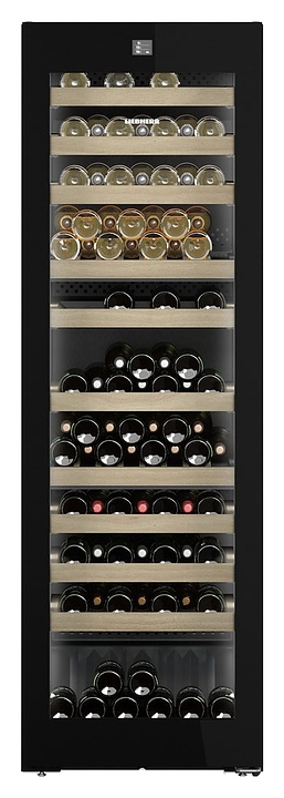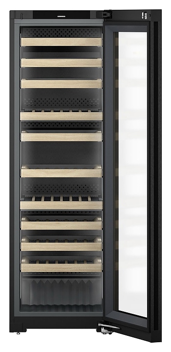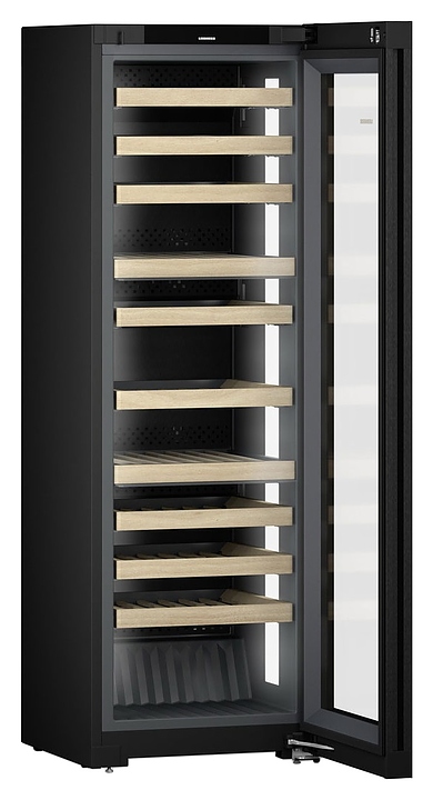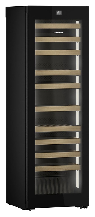 Винный шкаф Liebherr WPgbi 5273 серии Vinidor Selection предназначен для охлаждения и хранения при оптимальных условиях бутилированного вина различных сортов в барах, ресторанах, специализированных магазинах, подсобных складских помещениях, а также домашних условиях. Модель оснащена холодильной камерой с 3 независимыми температурными зонами, правосторонней распашной дверью на перенавешиваемых петлях с обзорным остеклением, кабелем питания с евровилкой, расположенным в верхней части фасада двери сенсорным цветным дисплеем управления и индикации. Боковины и сухая задняя панель выполнены из легированной стали с устойчивой к царапинам и отпечаткам пальцев сатинированной вертикальными штрихами поверхностью BlackSteel оттенка черная сталь, дверь с фасадом GlassBlack с полным фронтальным остеклением без винтового крепежа, полки – из массива буковой древесины, упаковка – из гофрокартона, полимерной пленки и полистирола.
