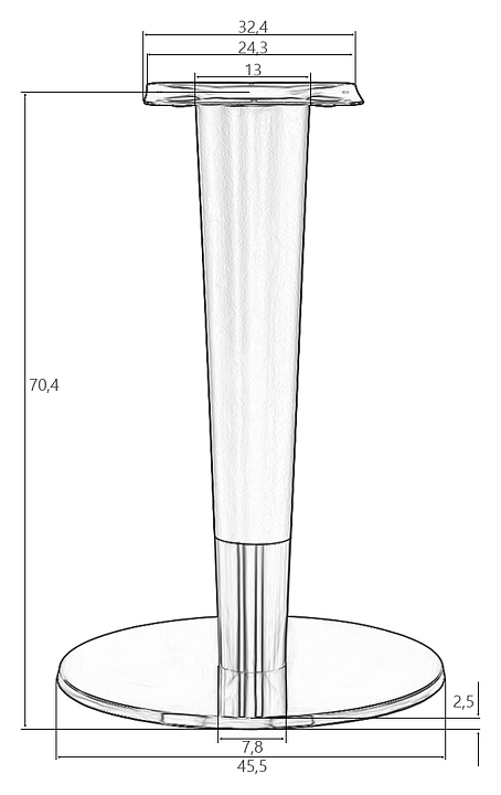 Подстолье обеденное DOBRIN ANGELO LMS-8802 используется в качестве опоры для столешницы обеденного стола в кафе, ресторанах и на других предприятиях общественного питания и торговли. Модель оснащена регулировкой под неровный пол. Изделие выполнено из металла, ножка из круглой металлической трубы и пластика. Особенности: