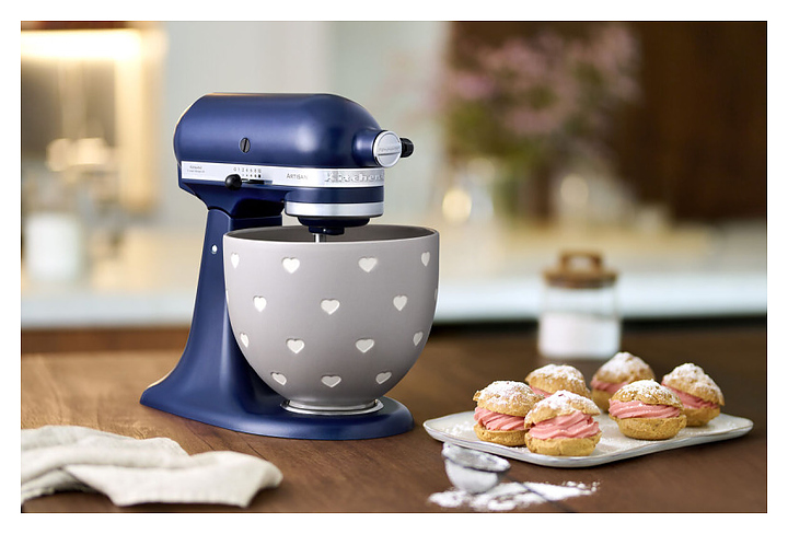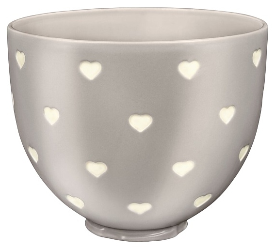 Чаша KitchenAid 5KSM2CB5CH используется совместно с настольными планетарными миксерами с откидным блоком и объемом чаши 4,3 и 4,8 л для замешивания теста, взбивания кремов, муссов, а также для приготовления пюре, соусов и коктейлей в домашних условиях. Возможны эксплуатация в микроволновой печи, морозильном и духовом шкафу, а также мойка в посудомоечной машине. Изделие выполнено из остеклованной керамики с титановым армированием, поверхностью бежевого оттенка и текстурным декором лицевой стороны борта «сердечки». Характеристики: