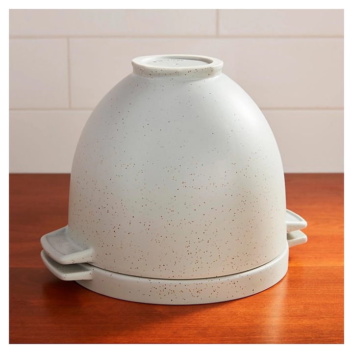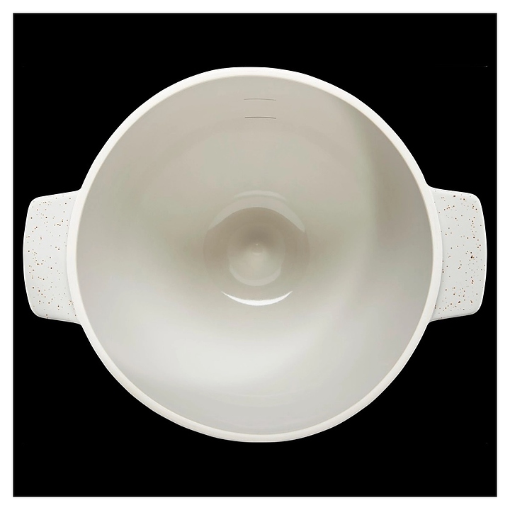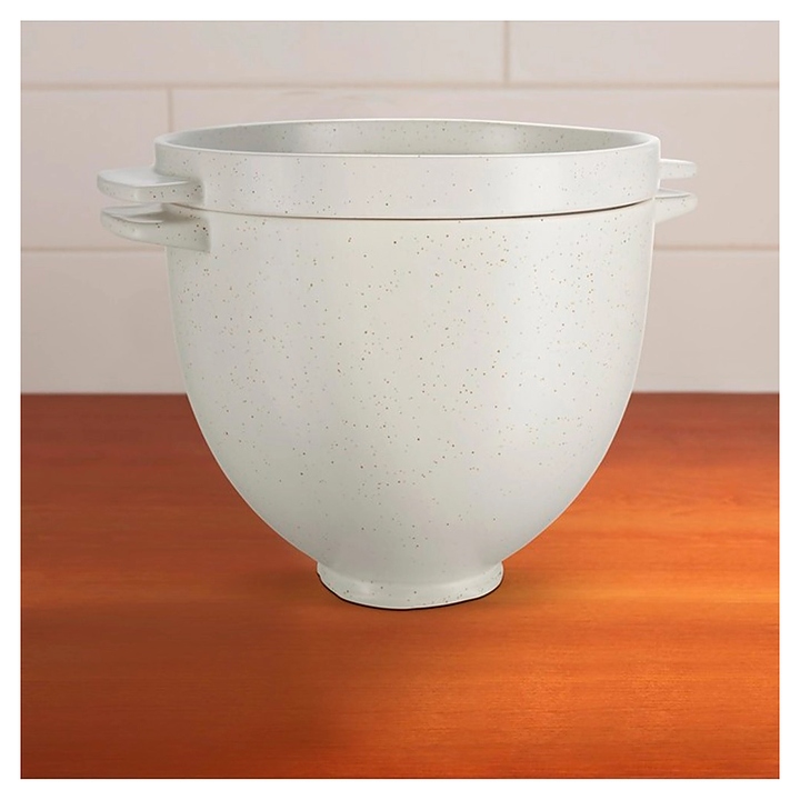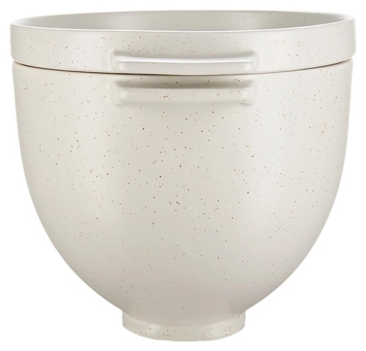 Чаша KitchenAid 5KSM2CB5BGS используется совместно с настольными планетарными миксерами 5KSM125, 5KSM150, 5KSM175 и 5KSM185 с откидным и объемом чаши 4,3 и 4,8 л для замешивания теста, выпекания и подачи к столу хлебобулочных и кондитерских в домашних условиях. Емкость оснащена 2 уплощенными рукоятками и крышкой-противнем с дублирующими рукоятками. Возможны эксплуатация в микроволновой печи, морозильном и духовом шкафу, а также мойка в посудомоечной машине. Изделия выполнены из остеклованной керамики с титановым армированием и белой поверхностью с крапчатым декором. Характеристики: