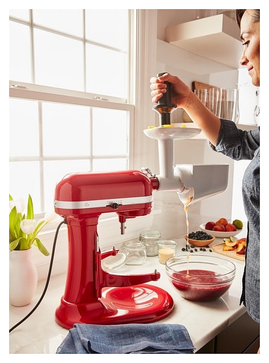 Насадка KitchenAid 5KSMFVSP используется совместно с насадкой-мясорубкой 5KSMFGA для планетарных миксеров для протирки фруктов и овощей в домашних условиях. Возможна мойка в посудомоечной машине. Лоток и шнек выполнены из белого полимера, сито-терка – из металла. Комплектация: