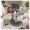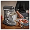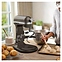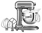 Настольный планетарный миксер KitchenAid Artisan 5KSM60SPXECU серии Heavy Duty используется в домашних условиях для замеса теста различной консистенции, в том числе белкового, заварного, дрожжевого, бисквитного, а также приготовления пюре, кремов, муссов и соусов. Механизм вращения месильного органа аналогичен поступательно-вращательному движению планет, причем насадка вращается вдоль своей оси в противоположном направлении поступательному движению, таким образом ингредиенты тщательно перемешиваются в однородную массу. Модель оснащена электродвигателем переменного тока, механизмом подъема и опускания чаши с фиксирующими лапками, кабелем питания с вилкой и электромеханической панелью управления. Литой корпус обтекаемой формы выполнен из цинка с покрытием износостойкой эмалью серебристого оттенка и декоративной серебристой полосой с логотипом по периметру нижней части головки моторного блока, рукоятки управления – из металла с полимерными накладками, чаша – из нержавеющей стали с серебристой полированной поверхностью, венчик – из металла, лопатка и крюк – из металла с антибактериальным полиэфирным покрытием с содержанием серебра, защитный обод – из пластика. Комплектация: