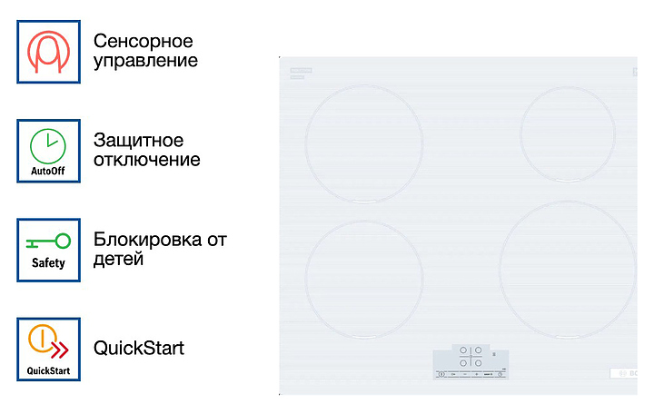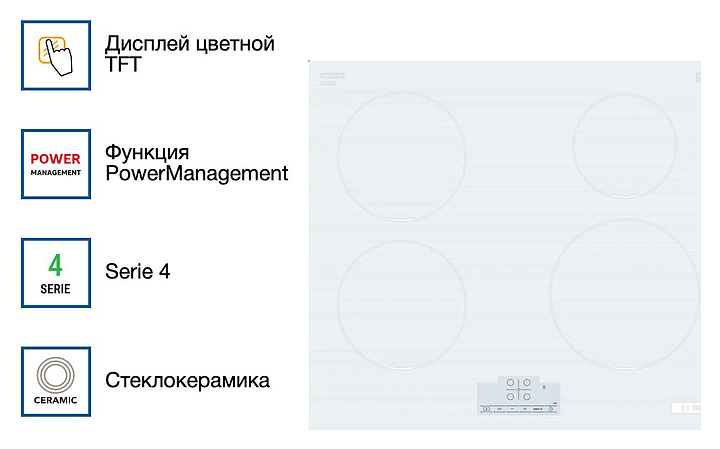 Варочная панель Bosch PUE612BB1J предназначена для приготовления большого ассортимента блюд в наплитной посуде в домашних условиях. Модель оснащена сенсорной системой управления TouchSelect, LCD дисплеем и таймером с функцией отключения для каждой конфорки. Индукционная технология обеспечивает передачу до 90% энергии непосредственно посуде, что значительно экономит электроэнергию по сравнению с традиционными плитами. Отсутствие открытого огня и минимальный нагрев окружающей среды делают приготовление пищи более безопасным и комфортным. Поверхность выполнена из стеклокерамики. Особенности: