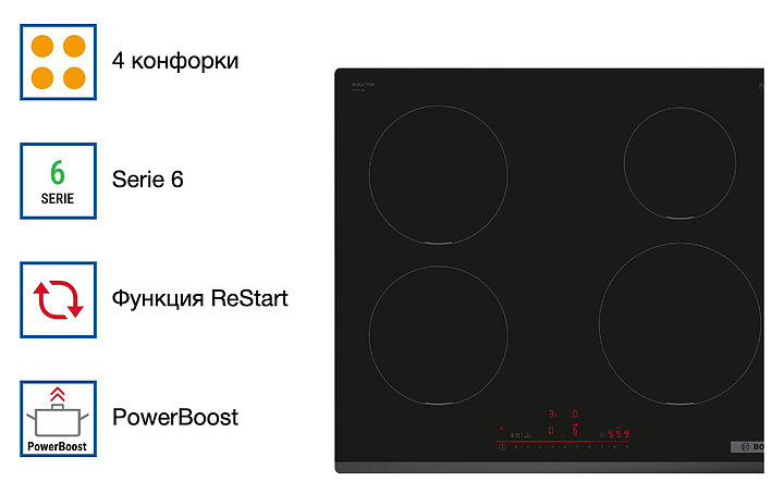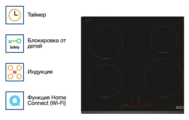 Варочная панель Bosch PIE631HB1E предназначена для приготовления большого ассортимента блюд в наплитной посуде в домашних условиях. Модель оснащена сенсорной системой управления DirectSelect, TFT дисплеем и таймером. Индукционная технология обеспечивает передачу до 90% энергии непосредственно посуде, что значительно экономит электроэнергию по сравнению с традиционными плитами. Отсутствие открытого огня и минимальный нагрев окружающей среды делают приготовление пищи более безопасным и комфортным. Поверхность выполнена из стеклокерамики. Особенности: