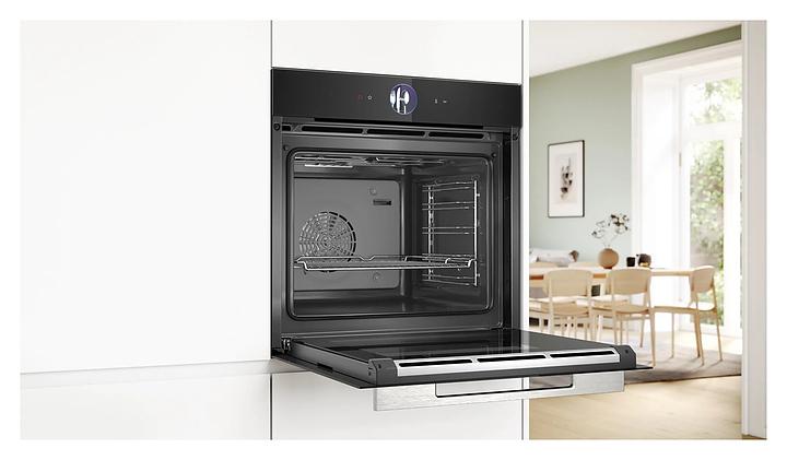 Духовой шкаф Bosch HBG7361B1 серии 8 используется в квартирах и частных домах для приготовления широкого спектра блюд из овощей, мяса, птицы и рыбы, а также выпечки десертов и хлебобулочных изделий. Модель оснащена сенсорными элементами управления, цветным TFT дисплеем с сенсорными кнопками, электронными часами, таймером и внутренним LED освещением. Функция Home Connect позволяет контролировать настройки работы и процесс выполнения программы через мобильное приложение. Гидролизная технология очистки духового шкафа паром гарантирует простой уход. В комплект поставки входят комбинированная решетка, эмалированный и универсальный противни. Особенности: