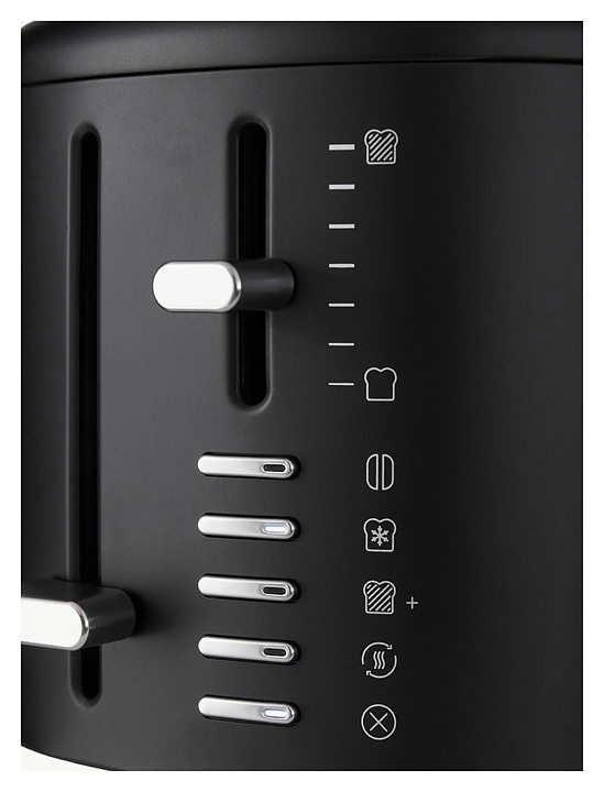 Тостер KitchenAid 5KMT2109EBM используется в офисах, гостиницах и домашних условиях для обжаривания ломтиков хлеба различных сортов. Модель оснащена 2 слотами для тостов, кабелем питания с вилкой, электромеханической панелью управления с рычажными рукоятками, нажимными функциональными клавишами и светодиодными индикаторами. Корпус обтекаемой прямоугольно ориентированной формы выполнен из металла и ударопрочного пластика с матовой поверхностью черного цвета (Black Matte) и декорирован горизонтальной серебристой полосой с логотипом по периметру основания, верхняя панель и решетки слотов – из нержавеющей стали с глянцевой серебристой поверностью, опоры – из черного полимера с матовой поверхностью, поддон для крошек – из нержавеющей стали, фурнитура с серебристой поверхностью. В комплект поставки входят инструкция по эксплуатации, гарантийный талон и заводская упаковка. Особенности: