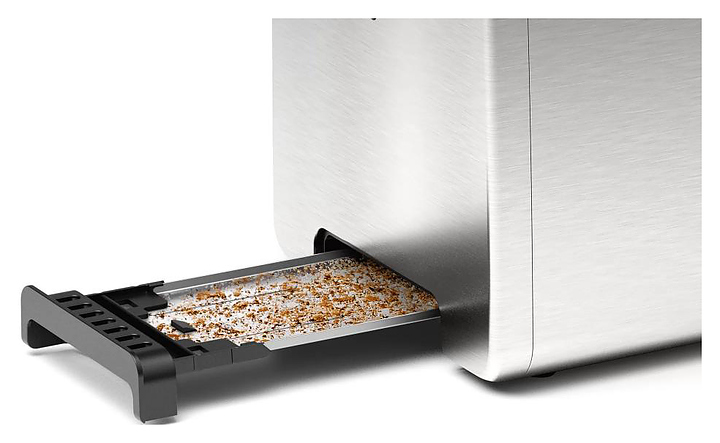 Тостер Bosch TAT3P420 серии ComfortLine предназначен для подогрева и поджарки кусочков хлеба в частных домах и квартирах. Модель оснащена механическим управлением, таймером, 2 слотами для хлеба и выдвижным съемным поддоном для крошек. Функция экстра-подъема High Lift позволяет легко и безопасно поднять самые маленькие ломтики хлеба на достаточную высоту для извлечения. Корпус выполнен из нержавеющей стали. Особенности: