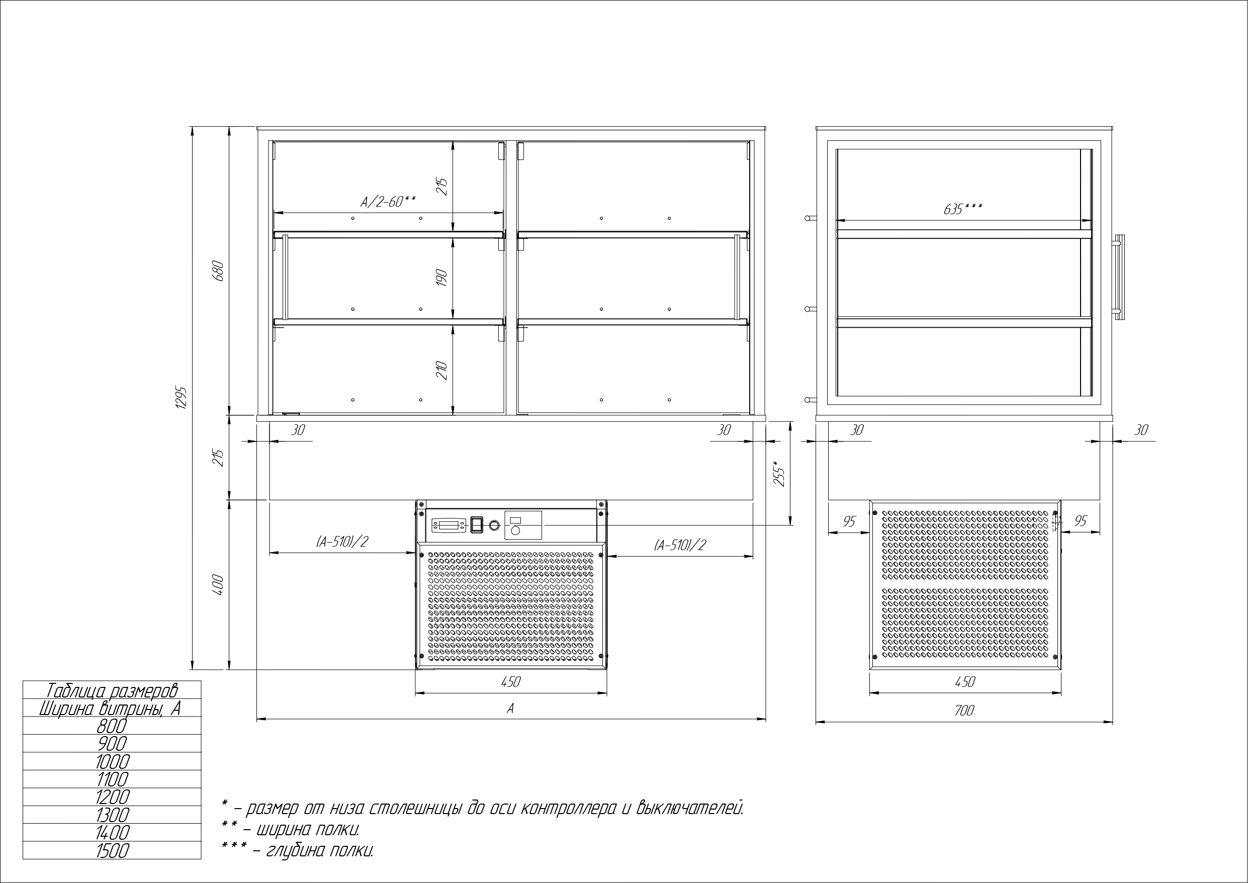 Встраиваемая холодильная витрина Finist AQUARIUM ВХВс-15/7/14 предназначена для демонстрации и раздачи охлажденных салатов, а также других блюд и напитков на предприятиях общественного питания и торговли. Модель оснащена закрытой холодильной камерой, скрытыми под основанием камеры агрегатным отсеком, кабелем питания с вилкой и электромеханической панелью управления. Корпус агрегатного отсека выполнен из оцинкованной стали, каркас купола и основание камеры – из высококачественной нержавеющей стали с зеркальной поверхностью, полки – из нержавеющей стали, остекление – из прочного стекла. В комплект поставки входят 3 полки - решетки, инструкция по эксплуатации, гарантийный талон и заводская упаковка. Особенности: