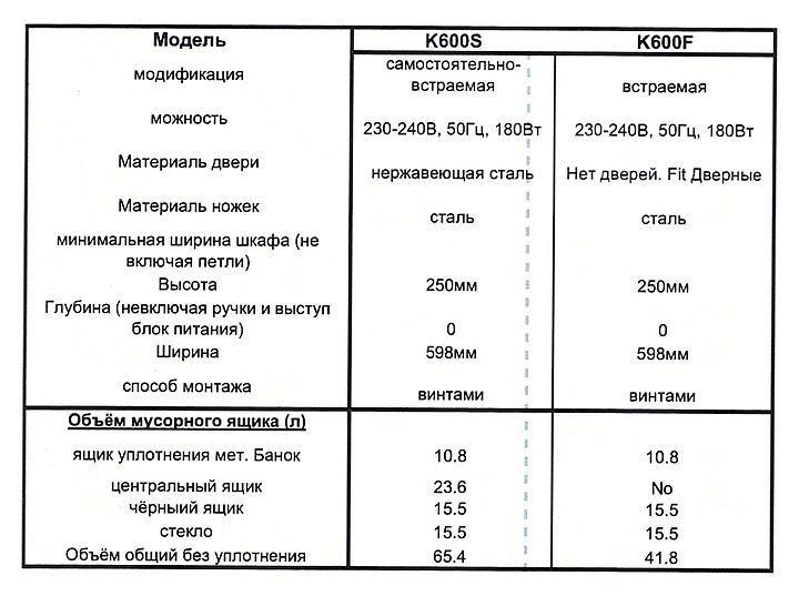 Krüshr К600 - это наиболее комплексное решение для утилизации отходов дома с мусорным контейнером более чем 65 литров (до уплотнения) и 4 отдельными отсеками для размещения различных отходов и вторичноrо сырья. Практичный, эффективный и аккуратный метод сортировки, уплотнения и хранения отходов в домашних условиях. Основные характеристики: