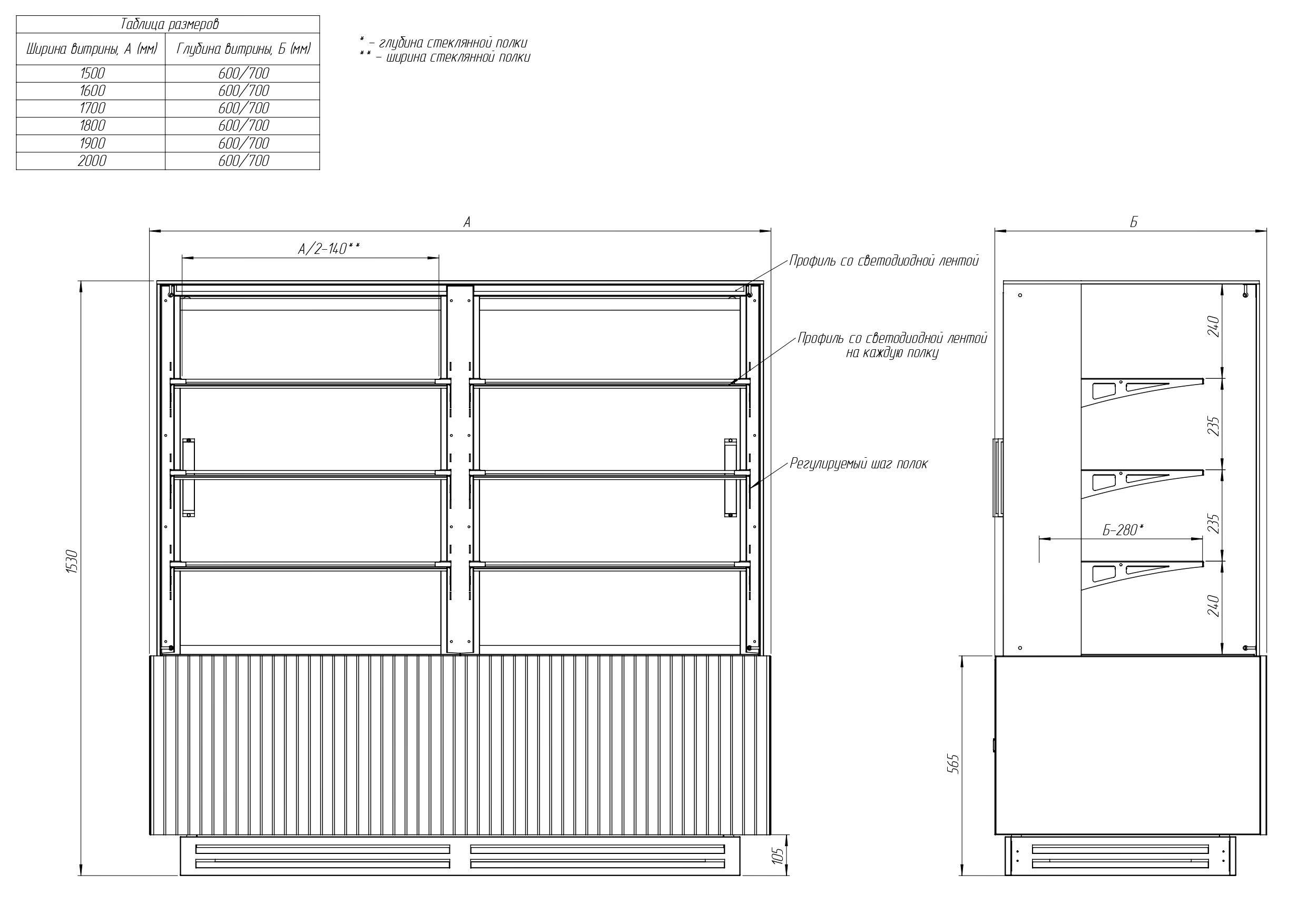 Витрина кондитерская Finist AIR DOUBLE LUX ADL-160-6-153